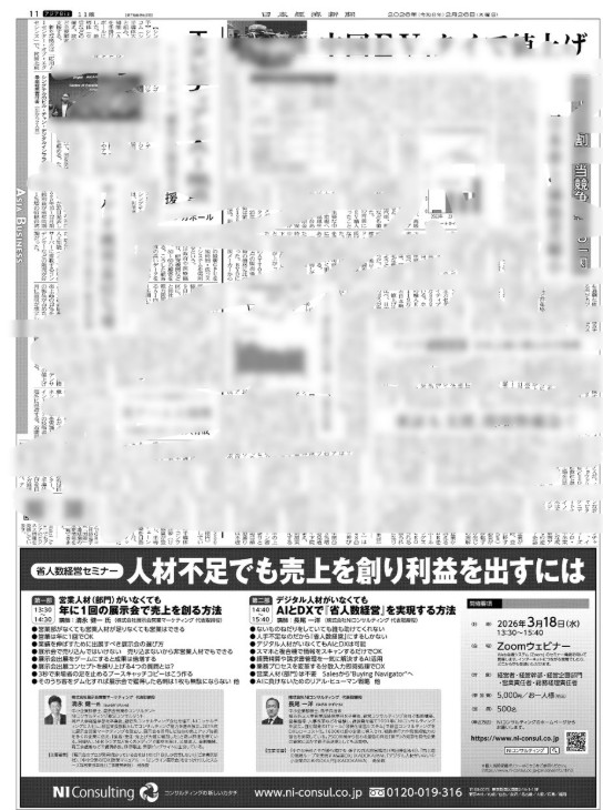 日経新聞朝刊に弊社代表の清永健一が登壇するNIコンサルティング主催のセミナーの広告が掲載されました